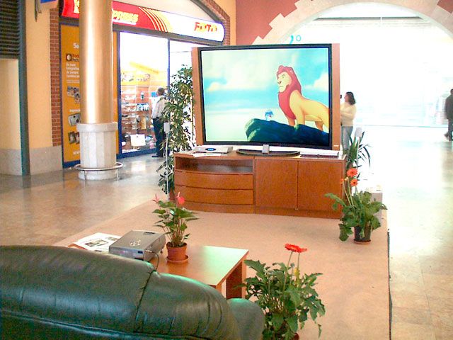 Mas a tela também tem vantagens: Pode ser escondida dentro de uma caixa e aparecer só quando faz falta. Assim os quadros e os móveis podem continuar na parede.